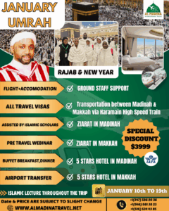 Enjoy an enriching spiritual journey with AlmadinaTravel, assisted by dedicated Islamic scholars to guide you along your sacred journey